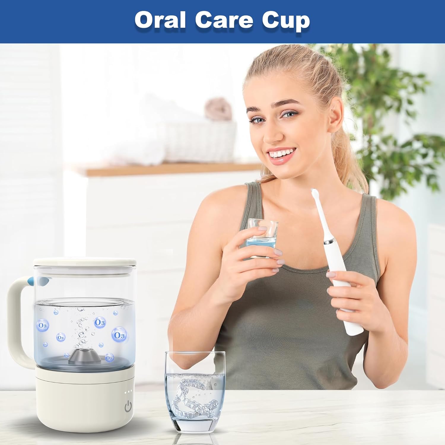Ozone Water Cup ,Portable Rechargeable O3 Generator – Glass Mouthwash Cup for Brushing Teeth, Fresh Oxygen Hydrogen Water Purifier, Multi-Purpose Hygiene Tool